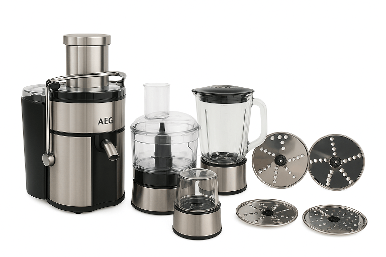 غذا ساز حرفه ای و همه کاره برند AEG با موتور قدرتمند 1600W و تیغه های تیتانیوم دستیاری حرفه ای که شمارو از خرید چندین دستگاه بی نیاز میکنه